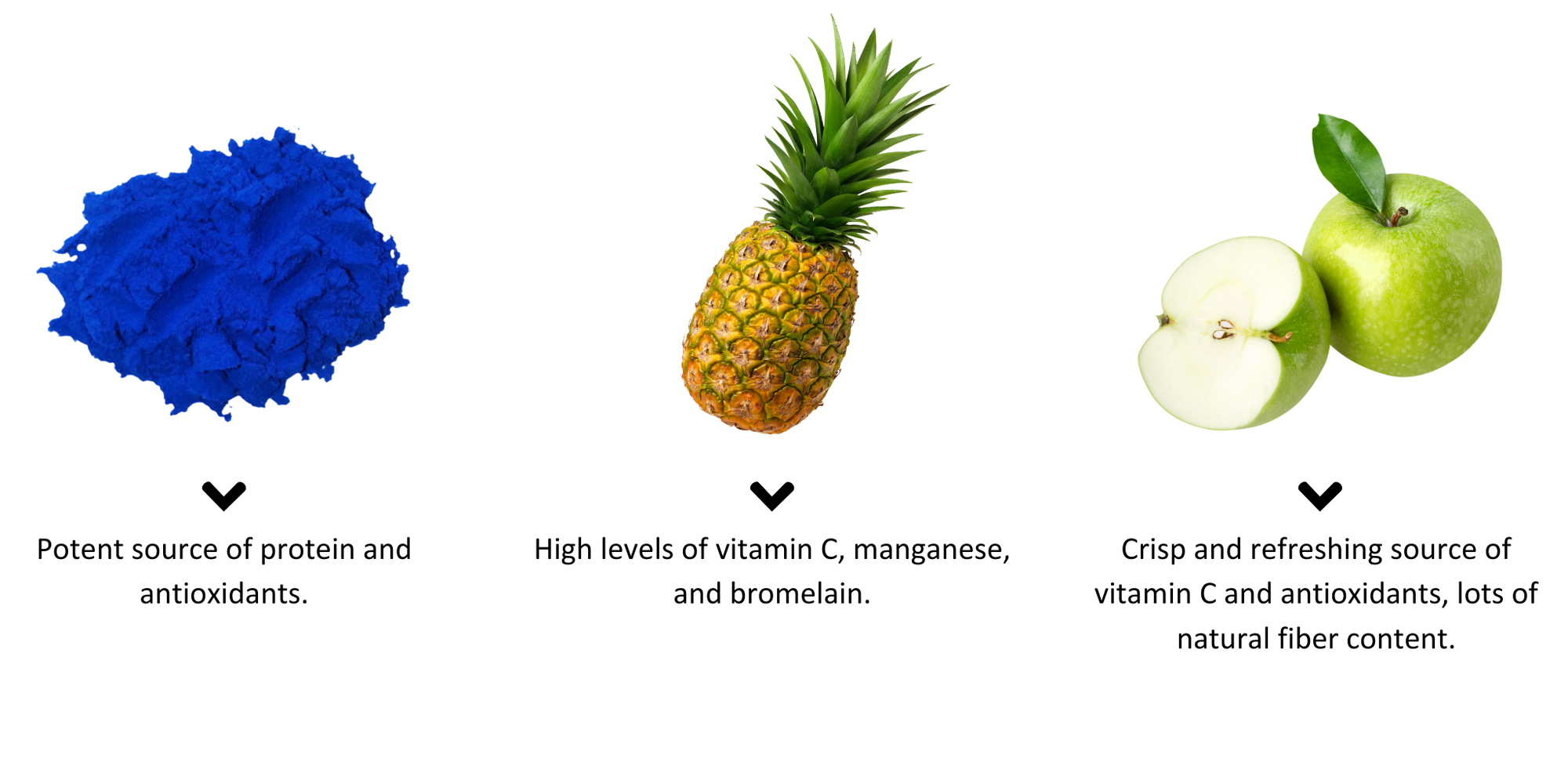 Pineapple, Green Apple, Lemon, Lime, Mint, Blue Spirulina